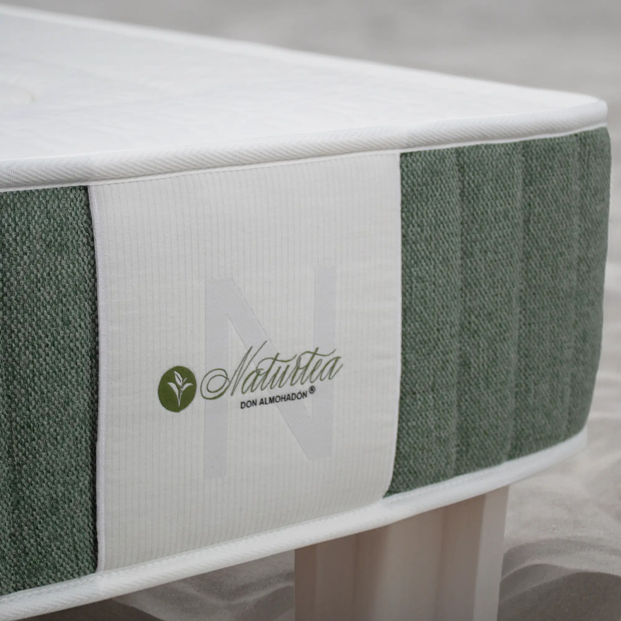 El colchón naturtea está confeccionado con tejidos tratados al té verde, planta natural desde hace mas de mil años que ayuda a eliminar toxinas y a contrarrestar el estrés.